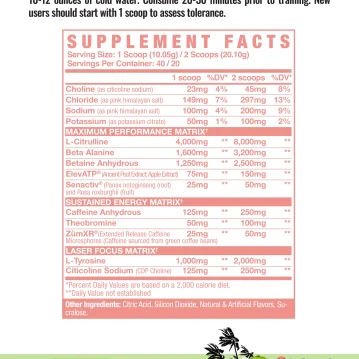 Intake navíc obsahuje inovativní složky, jako jsou Senactiv®, ElevATP® a CDP-Choline, které přispívají k jedinečnému složení výrobku. Již jedna odměrka může podpořit váš trénink, zatímco dvě odměrky mohou poskytnout intenzivnější zážitek. Ať už se věnujete silovému tréninku, cvičíte powerlifting, nebo do toho prostě jen dáváte v posilovně všechno, Intake vám pomůže vytěžit z vašeho tréninku maximum.