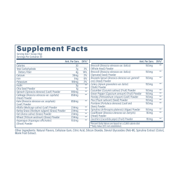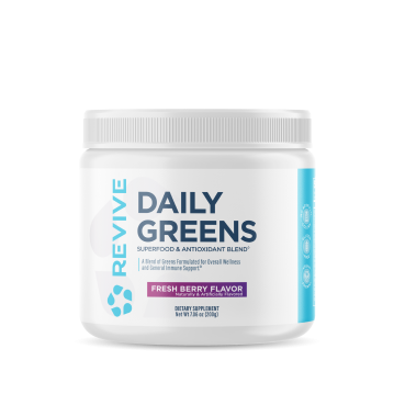 Revive Daily Greens Powder je doplněk stravy na rostlinné bázi, který nabízí směs složek bohatých na živiny, včetně pšeničné trávy, spiruliny a chlorelly. Každá porce obsahuje 3 gramy těchto zelených superpotravin, které jsou bohaté na vitamíny, minerály a antioxidanty. Doplněk navíc obsahuje vlákninu, enzymy a prebiotika, jako je inulin, které podporují zdravé trávení a střevní flóru. Prášek je dostupný v příchutích Fresh Berry a Chocolate a neobsahuje lepek ani mléčné výrobky.