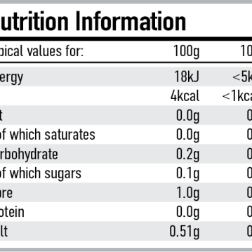 Per portie bevat het product geen suiker, geen vet en geen calorieën, volgens de productspecificaties. Het product heeft een vloeibare structuur en is eenvoudig te doseren.