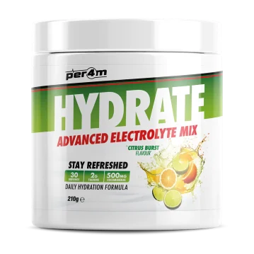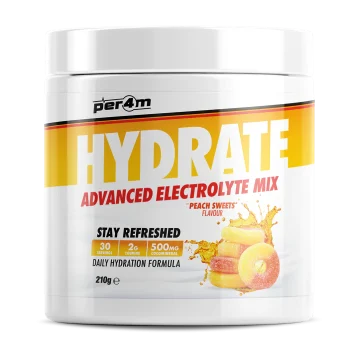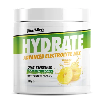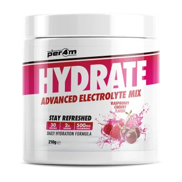 Per4m Hydrat är en uppfriskande avancerad elektrolytblandning som är utformad för att fylla på viktiga elektrolyter som förloras genom svettning, vilket säkerställer optimala vätskenivåer under hela dagen.