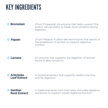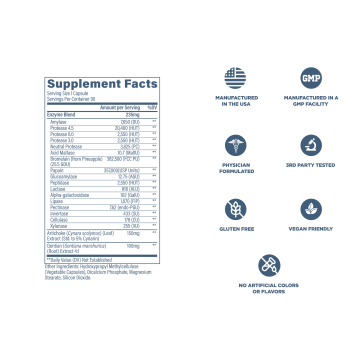 Revive MD Digest Aid är ett kosttillskott som erbjuder en kombination av matsmältningsenzymer, prebiotika och probiotika. Denna formel är utformad för att stödja nedbrytningen av kolhydrater, fetter och proteiner, vilket kan bidra till ett effektivare näringsupptag. Dessutom innehåller tillskottet ingredienser som kronärtskockbladsextrakt och gentianarot, som traditionellt används för att stödja matsmältningen.