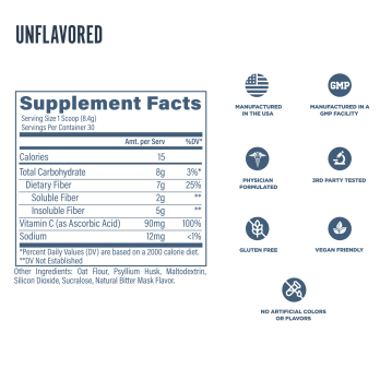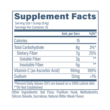 Ingredienser: Havregrynsmjöl, psylliumfiber, maltodextrin, kiseldioxid, sukralos, naturliga aromer.