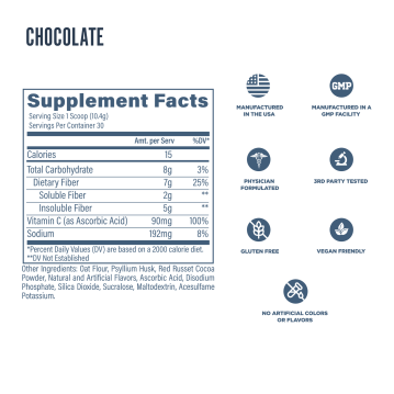 Revive MD Fiber är ett fibertillskott i pulverform som består av en blandning av lösliga och olösliga fibrer. Varje portion innehåller 7 gram kostfiber, som härrör från ingredienser som havremjöl och psylliumfiber. Kosttillskottet finns i både neutral och chokladsmak och är lämpligt för vegetarianer.