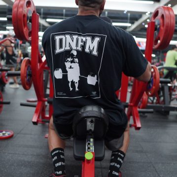 Svart T-shirt med vit text och logotyp på baksidan av JP själv.
